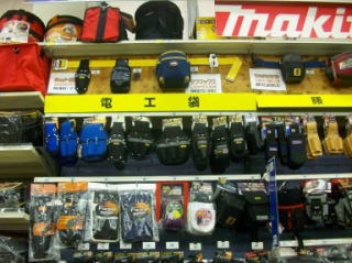 | いいね! 腰袋・安全帯のセットアップの見本陳列。残念なのがかなり高い所に設置してある為目に留まりにくい |