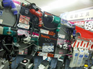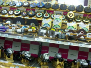 | 溶接機 | マックスのエアーツール類 | グラインダー売り場。本体の陳列&替え刃を上手く陳列している | ||