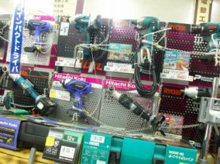 | 充電の工具 | こちらは100Vのドリルのコーナー | タジマの製品。、下げ振りが重り側で調整できる商品。このテのアイデア商品は実際に確認したいので、天井からか高い所から下げ振りを実際に設置して手元で調整できる事を体験してもらう仕掛けを行いたい |