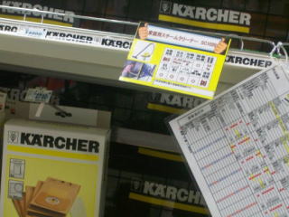 | 荷役用品。普通の人ならスルーだな | 売り出し中のケルヒャー高圧洗浄器。アイテムなど充実していたが、リョービとかぶっていて、選び難い また日用品コーナーに特売のケルが展開されており、二度迷うって感じだ |