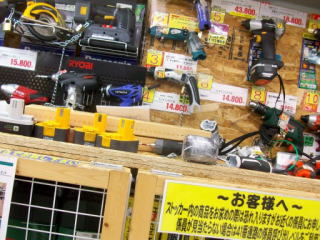 | これも定番の電動工具 | 大工道具 | 通路の特価の電動工具。DIY用・プロ用と混在 | ||