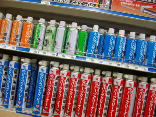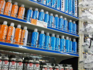 | 工具消耗品の入り口に潤滑材の大量陳列。 | しかし隣に五歩移動すると同様の物が陳列。おそらくコチラが定番で左の画像が仕掛け?だろうか? だったら、思い切って左の画像の陳列を消耗品の入り口に持って来て、大量陳列したい。下段はパーツクリーナーでシリコン・グリース・オイルと展開。バラの隣には一箱でもいいので、箱物を置きたい |